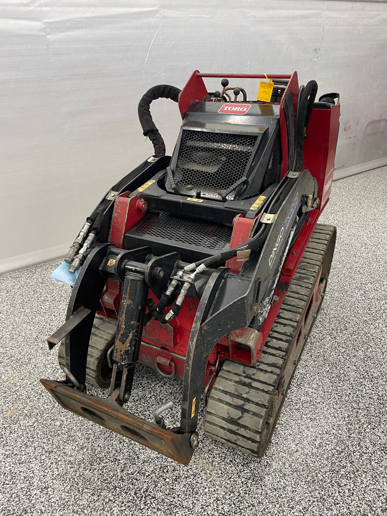 The Toro Dingo TX1000 features a vertical lift and a wide track design, optimizing stability and traction on uneven terrain. This enhances lifting capability and maneuverability, making it suitable for diverse landscaping and construction tasks. Its robust performance contributes to increased efficiency and productivity on the job site. Used in good condition.