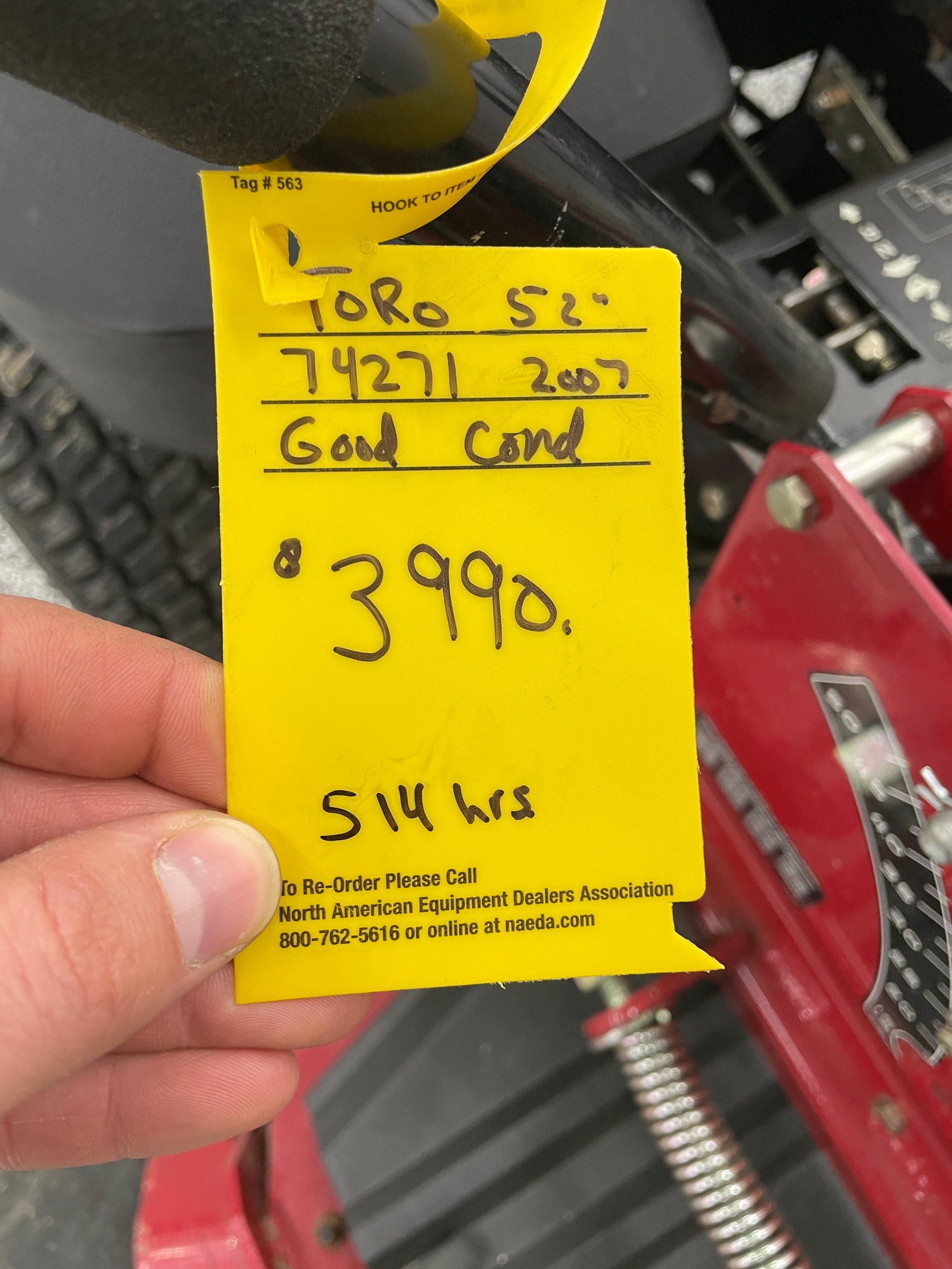The Toro Zero Turn mower, used, offers enhanced maneuverability and precision with its zero-turn capability, allowing operators to navigate around obstacles efficiently. Designed for durability, this model is ideal for both residential and commercial applications, providing a reliable solution for maintaining lawns with optimal cutting performance.